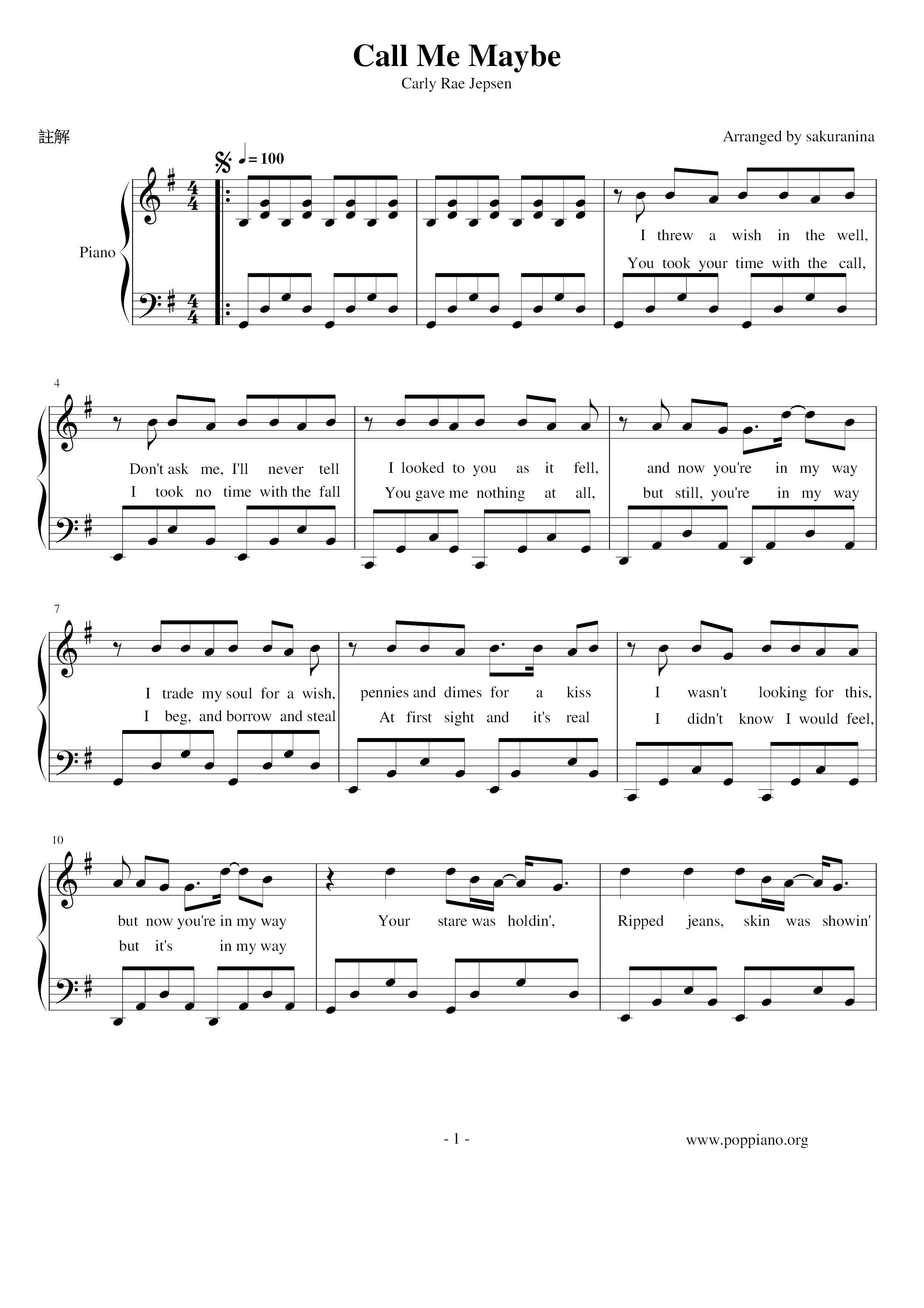Call Me Maybe Sheet music Download free in PDF or MIDI